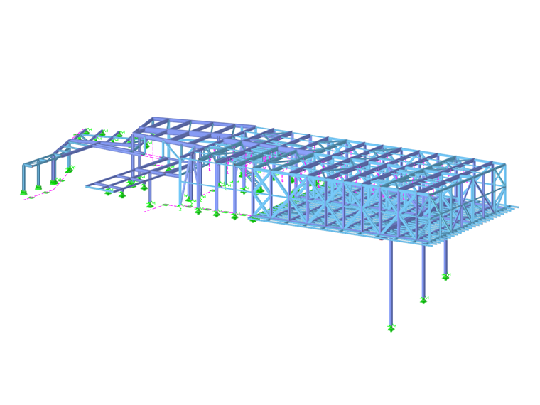 Da un punto di vista tecnico, l'utilizzo di grandi travi reticolari saldate sarebbe stato più semplice, ma non sarebbero state adatte per il trasporto e il montaggio. Pertanto, il team di Grabner Stahlbau ha deciso di sviluppare singoli componenti strutturali adatti sia per l'assemblaggio e che per tutte le fasi del trasporto, ma che soddisfino comunque i requisiti strutturali per quanto riguarda gli spostamenti generalizzati.