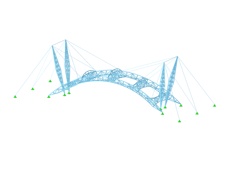 A causa della forma insolita della struttura, RWIND è stato necessario per calcolare la distribuzione della pressione del vento. RFEM è stato utilizzato per progettare la struttura in acciaio e per creare un modello dettagliato degli attacchi delle funi.