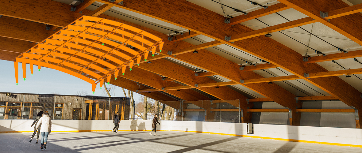 Überdachung der Freiluft-Eisbahn, Pasta Island, Jelgava, Lettland (© Rodentia SIA)