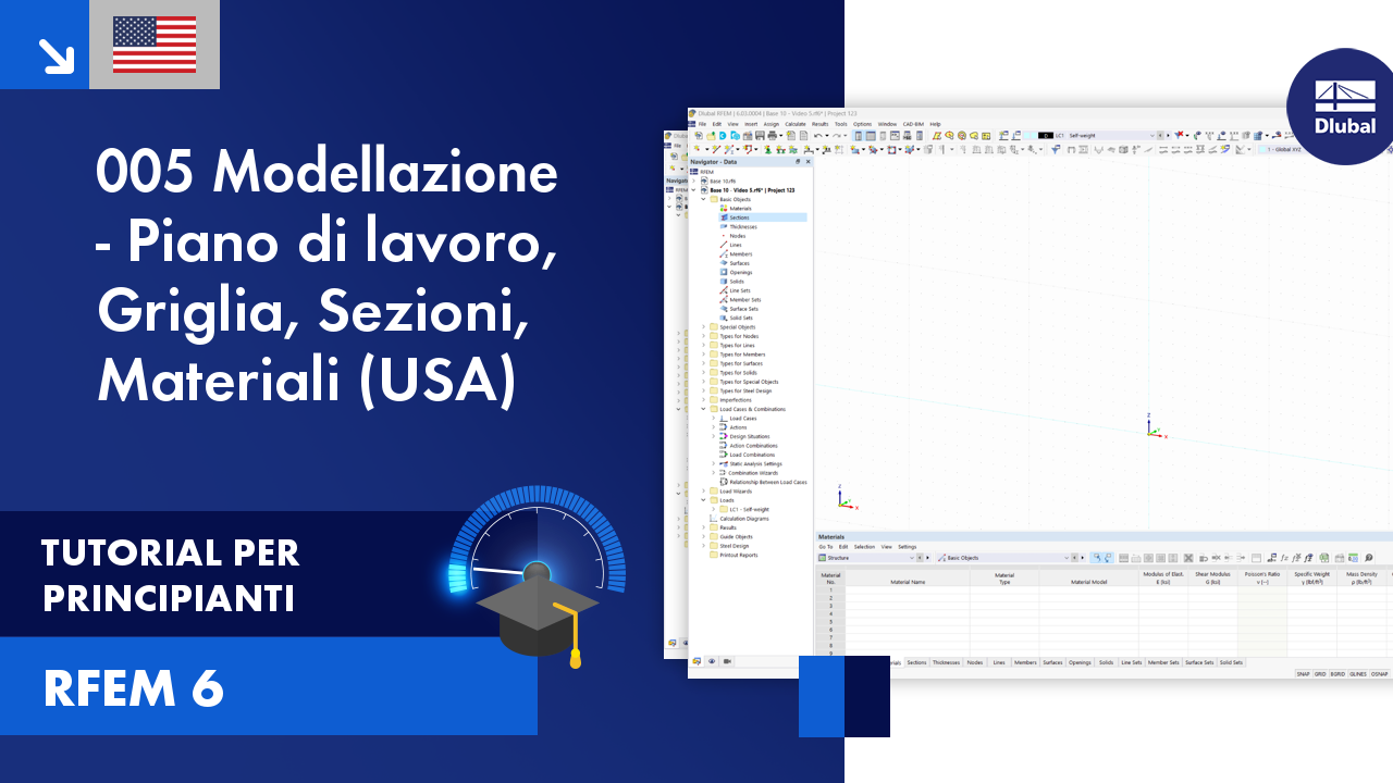 TUTORIAL PER PRINCIPIANTI | RFEM 6 Tutorial per principianti | 005 Modellazione | Piano di lavoro | Griglia | Sezioni | Materiali (USA)
