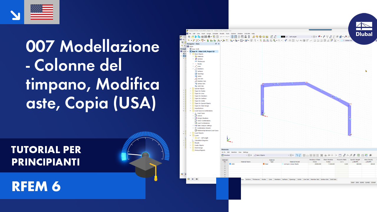 TUTORIAL PER PRINCIPIANTI | RFEM 6 Tutorial per principianti – 007 Modellazione, colonne del timpano, Modifica aste, Copia (USA)