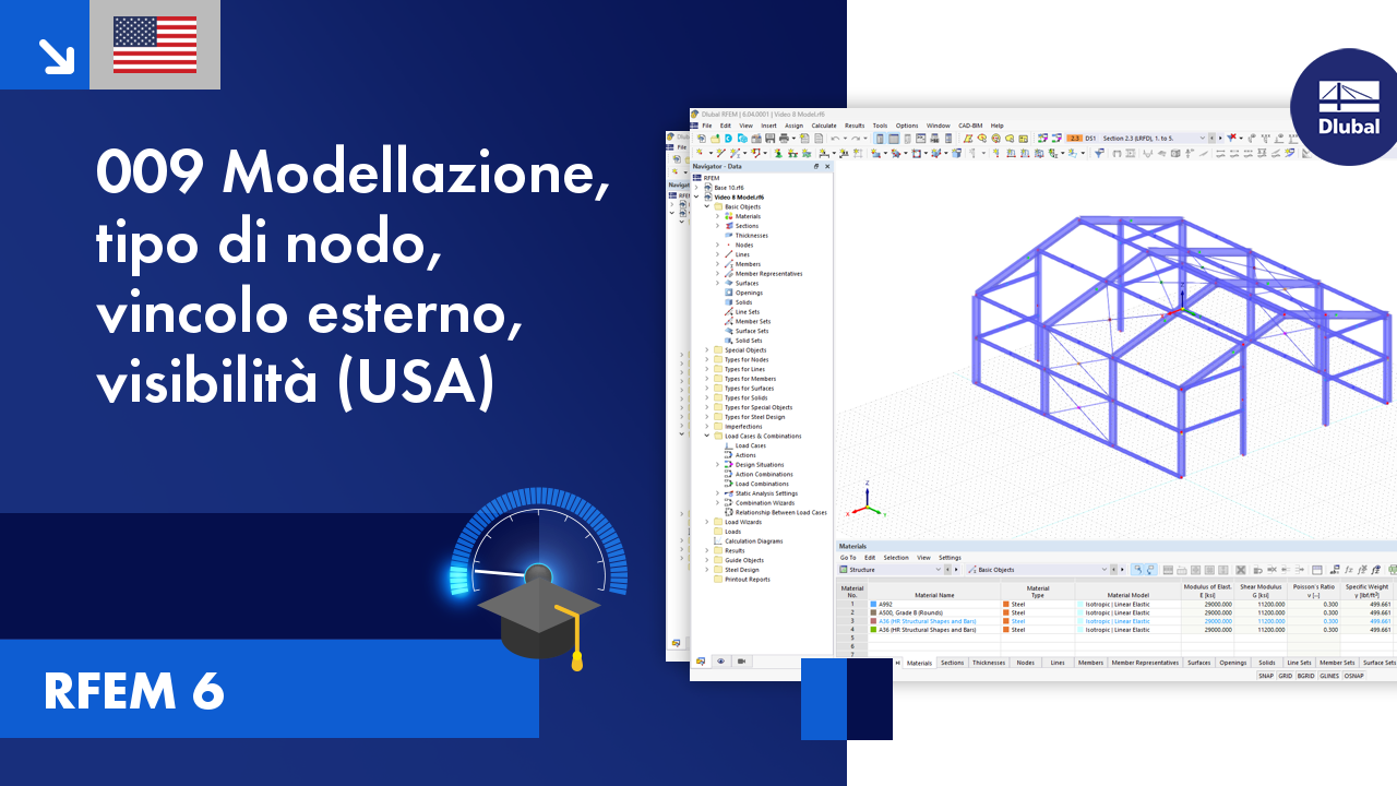 RFEM 6 Tutorial per principianti | 009 Modellazione | Tipo di nodo | Vinc. est. | Visibilità (USA)