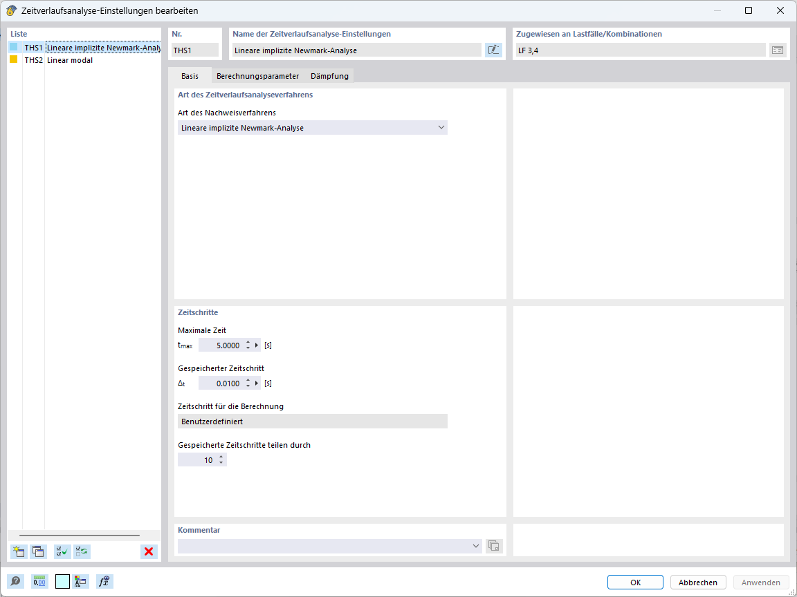 Impostazioni dell'analisi time history | Calcolo dei parametri