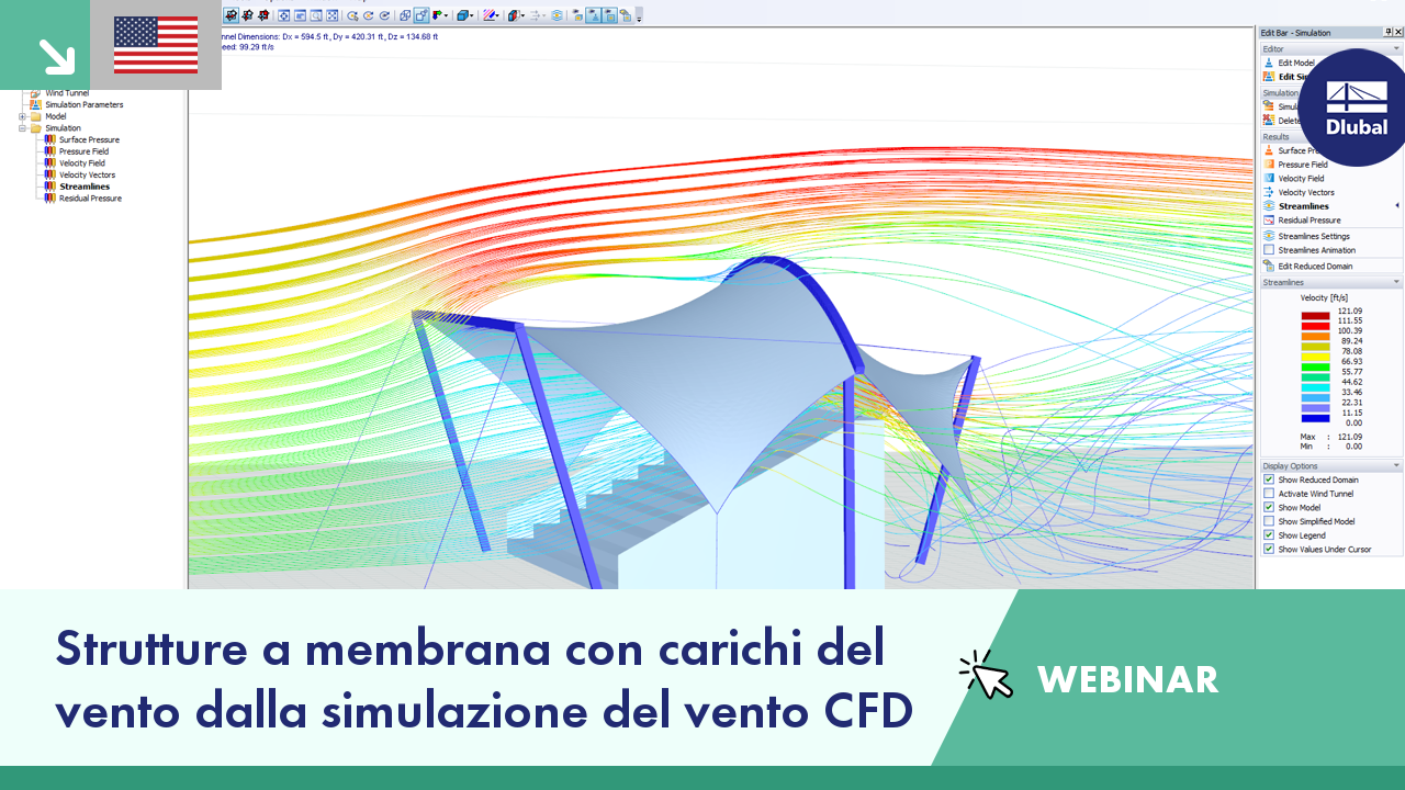 Strutture a membrana con carichi del vento dalla simulazione del vento CFD WEBINAR