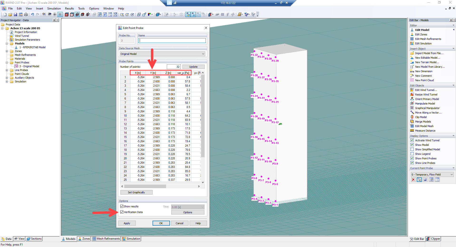 Immagine 02: Introduzione alla coordinazione delle sonde puntuali e ai valori di pressione sperimentali in RWIND