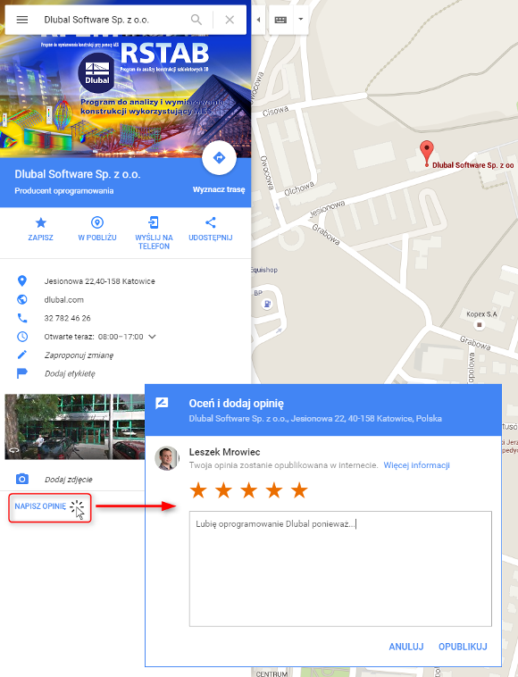 - Kliknij NAPISZ RECENZJĘ w lewym dolnym rogu.
