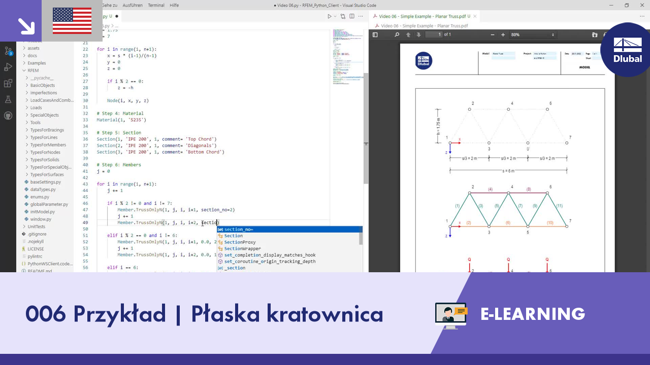 Programowanie w RFEM 6 i Python | 006 Przykład | Płaska kratownica