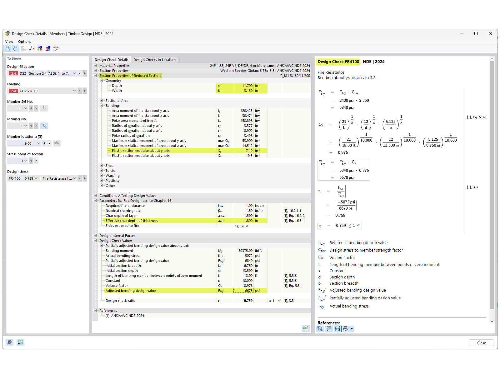 Projektowanie z uwagi na warunki pożarowe NDS dla prętów drewnianych w RFEM 6