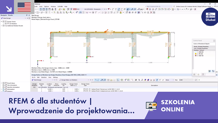 Po aktywowaniu dodatku projektowego i określeniu normy, interfejs użytkownika rozszerza się o nowe wpisy w nawigatorze, tabelach i oknach dialogowych. Parametry projektowania stali są w pełni zintegrowane z programem. Właściwości projektowe są zatem dostępne dla wszystkich prętów i zespołów prętów, które korzystają z materiału typu stal.