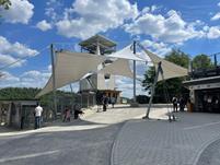 Trzy membrany są przymocowane za pomocą lin do prostego środkowego słupa i pochylonych słupów na krawędziach. Wszystkie słupy wykonane są z profili z rur okrągłych ze stali S 355. Słupy krawędziowe utrzymywane są za pomocą odciągów zakotwionych w ziemi. Najwyższy słup, środkowy, ma około 9,5 metra wysokości. W sumie cała konstrukcja membranowa zajmuje powierzchnię około 300 metrów kwadratowych.