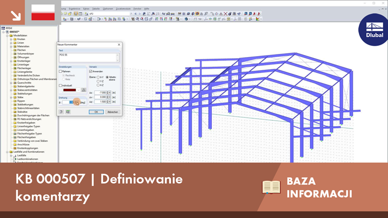 Ponadto płaszczyzna odsunięcia może zostać zmieniona przed wstawieniem tekstu komentarza. Można też obrócić tekst.