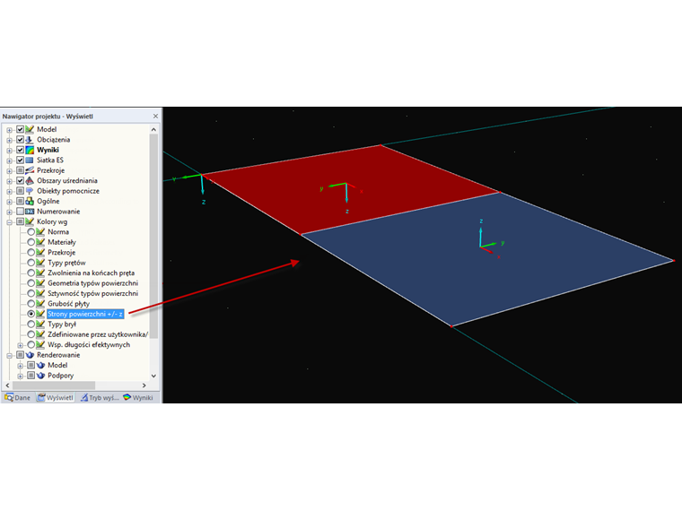 Diese Option ist zum Beispiel zur schnellen und übersichtlichen Kontrolle der Ober- und Unterseite von Flächen für die Bemessung in RF-BETON Flächen interessant.