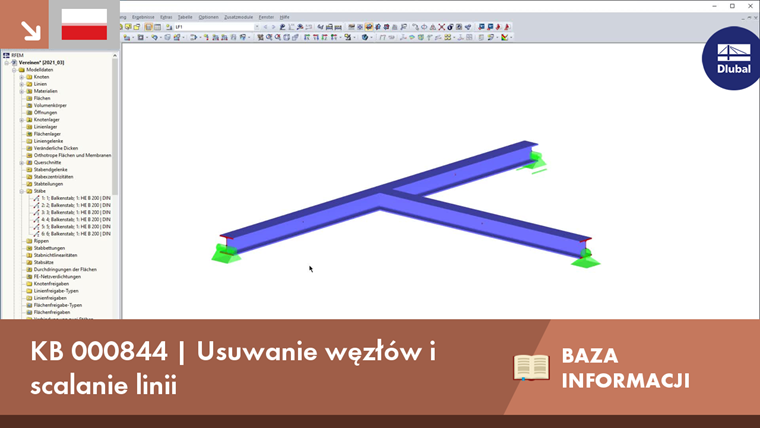 Podczas gdy klawisz [Del] usuwa wybrany węzeł, a tym samym połączone linie, pręty i powierzchnie, w menu kontekstowym dostępne są rozszerzone opcje usuwania węzłów - ale tylko w przypadku węzłów połączonych dokładnie z dwiema liniami lub prętami.