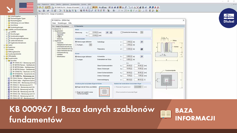 In RFEM 5 und RSTAB 8 in RF-/FUND Pro können die Fundamentabmessungen für alle fünf Fundamenttypen in einer benutzerdefinierten Bibliothek mit Fundamentvorlagen gespeichert und in anderen Modellen wieder verwendet werden.