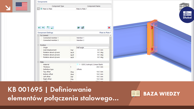 Dzięki rozszerzeniu Połączenia stalowe dla RFEM 6 można tworzyć i analizować połączenia stalowe przy użyciu wydzielonego modelu ES. Modelowanie połączeń można kontrolować poprzez proste i wygodne wprowadzanie elementów. Elementy stalowego połączenia można definiować ręcznie lub przy użyciu szablonów dostępnych w bibliotece. Pierwsza metoda została opisana w poprzednim artykule z Bazy wiedzy zatytułowanym „Nowe podejście do wymiarowania połączeń stalowych w programie RFEM 6”. W tym artykule skupimy się na tej drugiej metodzie; tzn. pokaże, jak definiować komponenty połączenia stalowego przy użyciu szablonów dostępnych w bibliotece programu.