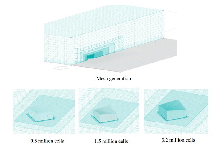Warto zauważyć, że wymiary tunelu aerodynamicznego mogą generować błędy, jeśli rozmiar tunelu jest mniejszy niż standardowy typ. Na następnym obrazie pokazano standardowy wymiar tunelu aerodynamicznego [3]. Ponadto wyniki są wrażliwe na rozmiary siatki, więc obliczenia powinny być realizowane dla co najmniej trzech różnych liczebności siatki, a gdy wyniki są wystarczająco zbliżone do poprzedniego etapu, osiągnięta zostaje niezależność od siatki (Obraz 06).