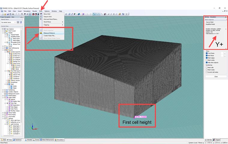 RFEM i RWIND są używane do generowania modelu rozciąganej membranowej konstrukcji, aby możliwe było rozpoczęcie symulacji wiatru, wraz z wdrożeniem ważnych kryteriów. RWIND to potężne narzędzie do tworzenia obciążeń wiatrem na ogólnych strukturach oraz skomplikowanych formach. CFD solver to program OpenFOAM® (wersja 17.10), który daje bardzo dobre wyniki i jest powszechnie używanym narzędziem do symulacji CFD. Solver numeryczny jest w stanie ustalonym dla nieściśliwego, turbulentnego przepływu, używając algorytmu SIMPLE (Semi-Implicit Method for Pressure Linked Equations).