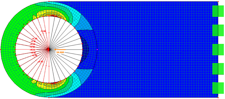 W przypadku docisku otworowego, siły są przenoszone tylko przez ściskanie. Zugkräfte treten nicht auf. Diese Effekte könnten Sie wie folgt modellieren (Beispiel siehe Bild):
