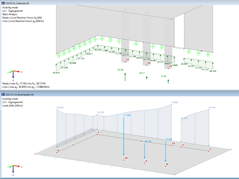 Mit dem Bestätigen des Lastassistenten erscheinen die angesetzten Lasten zunächst mit dem Wert "??". Der korrekte Wert wird erst angezeigt, wenn der jeweilige Lastfall berechnet wurde (Bild 04). To obliczenie uruchamia również obliczenia w modelu "matce".