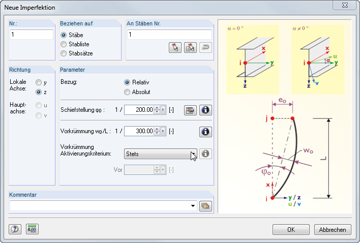 Imperfekcje można stosować do prętów, list prętów i prętów ciągłych. Numeracja prętów nie jest istotna. Moduł dodatkowy SUPER-RC umożliwia łączenie przypadków obciążeń z różnych modeli; czyli pliki. W ten sposób można określić różne etapy budowy.