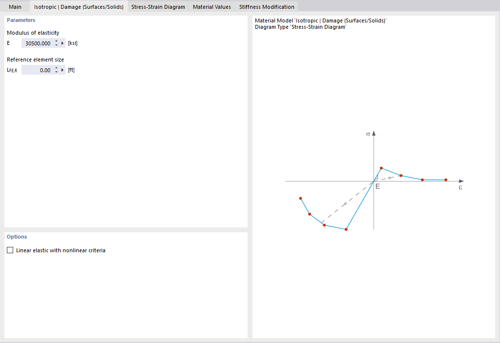 Theoretische Hintergründe zum Materialmodell 'Isotrop Beschädigung' können Sie im Fachbeitrag nachlesen: KB 001461 │ Uszkodzenie nieliniowych modeli materiałowych .