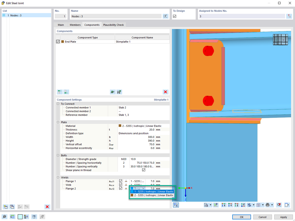 W przypadku spoiny łączącej dwie płyty z różnych materiałów, można teraz wybrać z pola rozwijanego, który z obu materiałów ma zostać użyty do utworzenia spoiny.