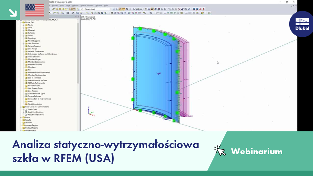 - Do 01:01:20: Przykład - Przypadek 4: Globalna analiza balkonu składającego się z paneli szklanych i elementów stalowych