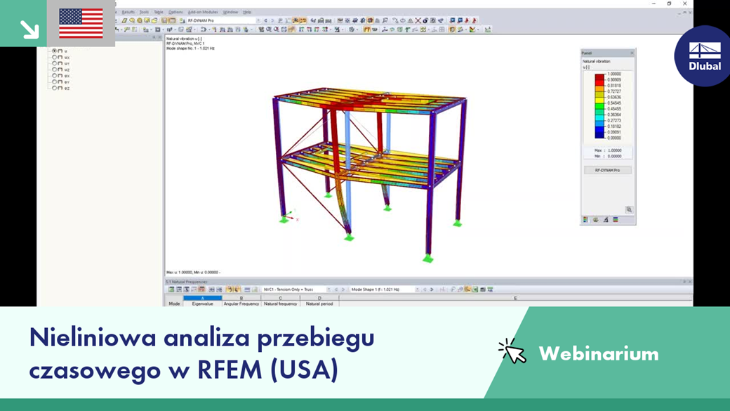 - Analiza częstotliwości drgań własnych konstrukcji z wykorzystaniem RF-DYNAM Pro - Natural Vibrations.