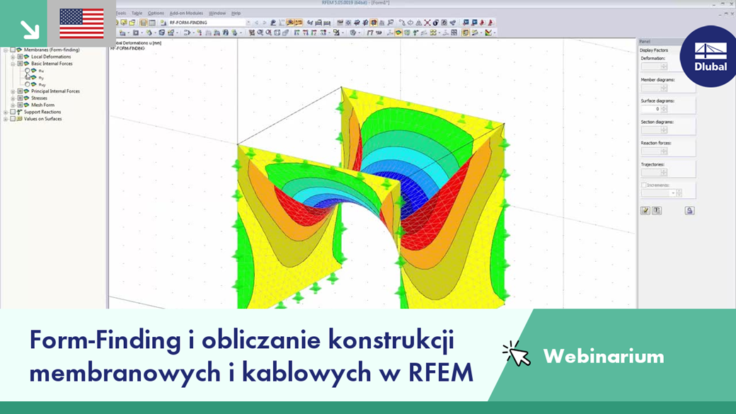 Znajdowanie kształtów i obliczanie konstrukcji membranowych i kablowych w programie RFEM