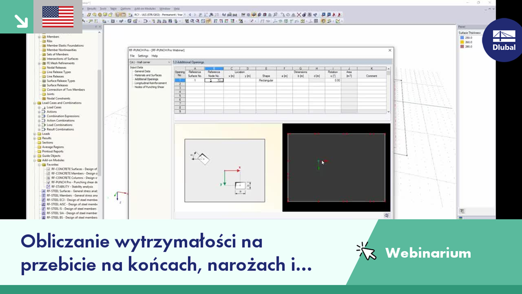 Obliczanie wytrzymałości na przebicie na końcach, narożach i słupach ściany w RFEM