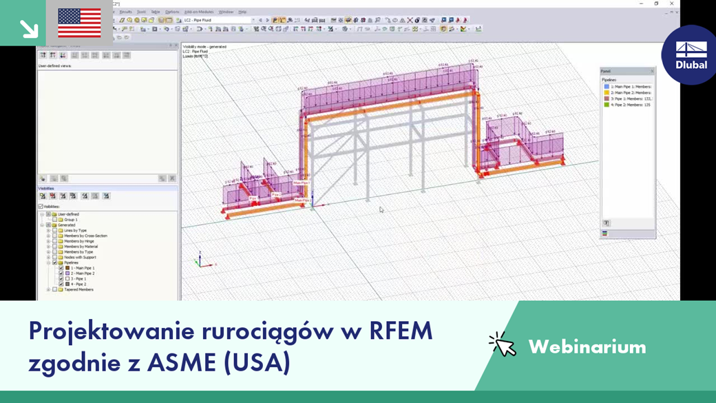 - Modelowanie rurociągów i konstrukcji wsporczych wraz z rozbudową modułu RF-PIPING w RFEM