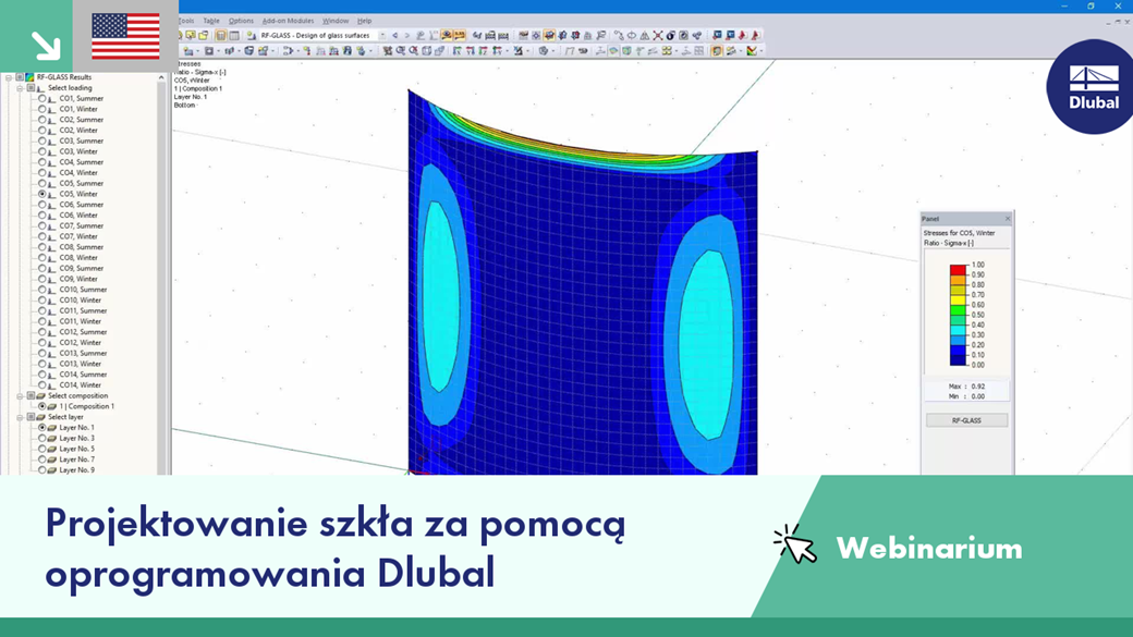 W tym webinarium przedstawiono projektowanie szyb zespolonych i szkła laminowanego za pomocą oprogramowania do analizy statyczno -wytrzymałościowej firmy Dlubal.