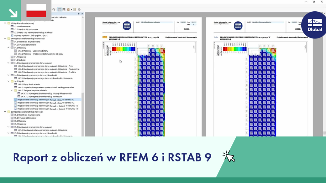 Wydruk wyników dla prętów i powierzchni w formie graficznej