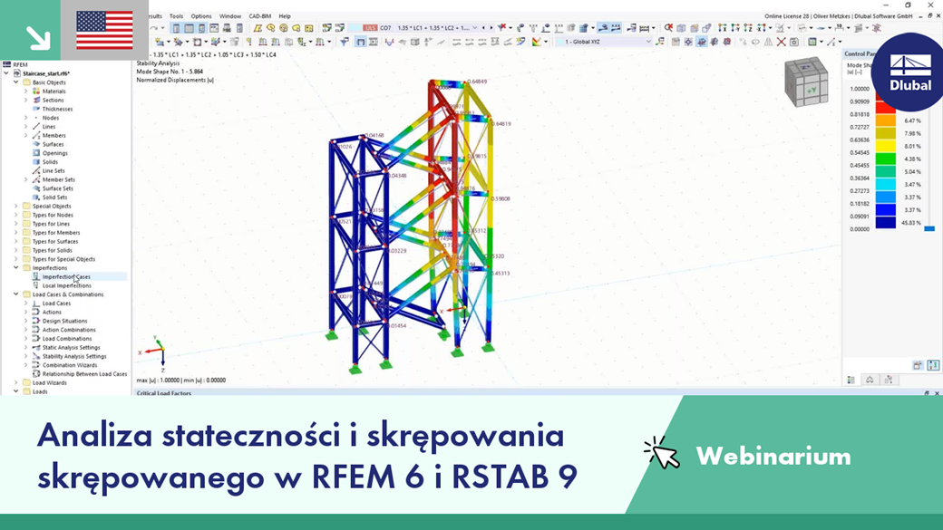 Analiza wyboczenia giętno-skrętnego zgodnie z Eurokodem 3 przy użyciu obliczeń globalnych z 7 stopniem swobody, imperfekcji i analizy drugiego rzędu