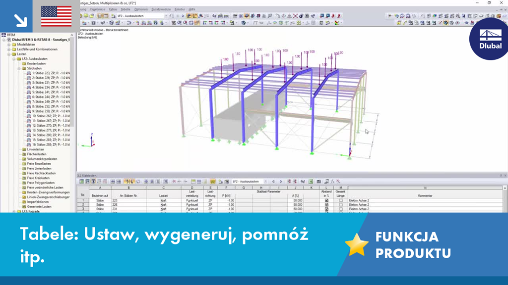 Dlubal RFEM 5 & RSTAB 8 - Tabele: Ustaw, wygeneruj, pomnóż itp.