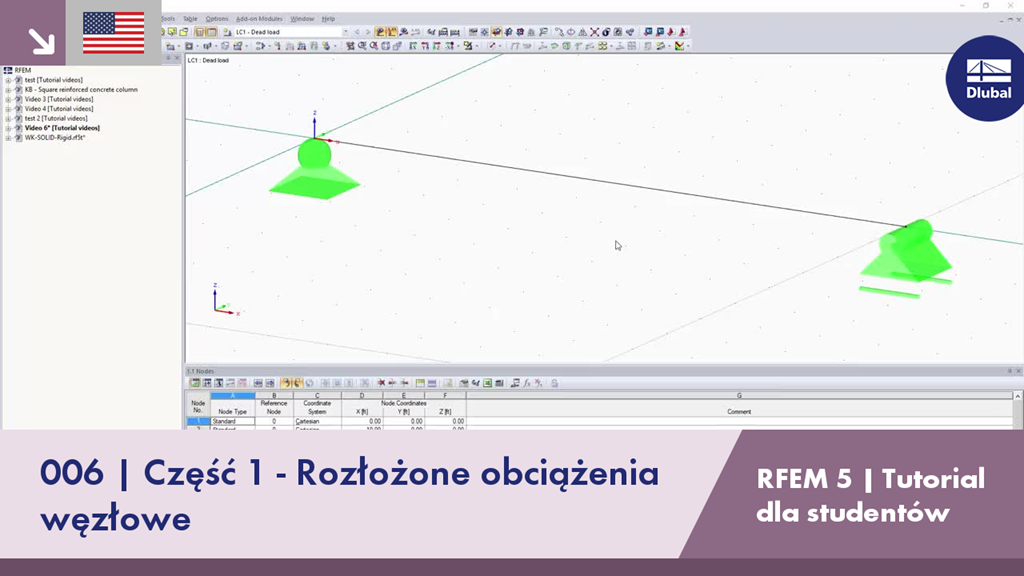 RFEM 5 Tutorial dla studentów | 006 Część 1 - Rozłożone obciążenia węzłowe