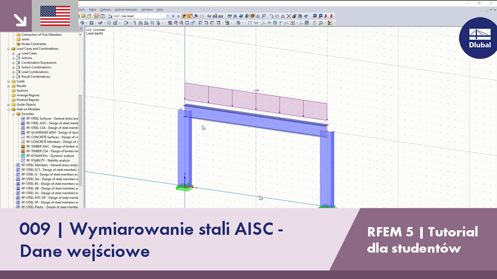RFEM 5 Tutorial dla studentów | 009 Konstrukcja stalowa AISC - Dane wejściowe