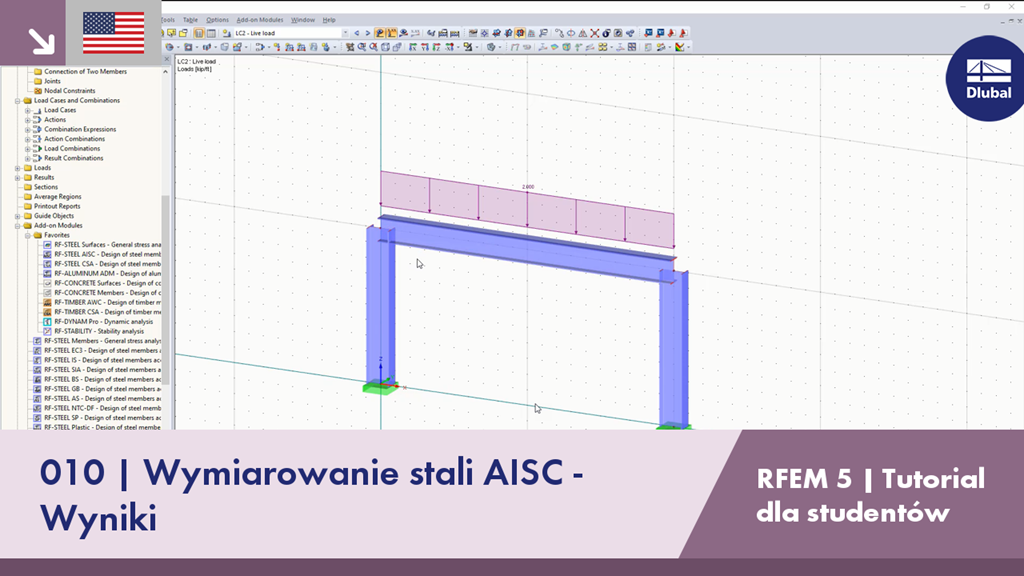 RFEM 5 Tutorial dla studentów | 010 AISC Wymiarowanie stali - Wyniki