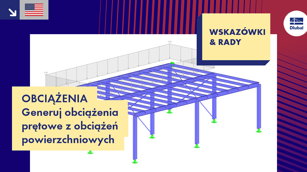 Film wideo pokazuje, w jaki sposób można użyć funkcji "Generować obciążenie", aby automatycznie przekształcić obciążenia powierzchniowe w obciążenia prętowe. W tym celu dostępne są opcje generowania obciążeń za pomocą płaszczyzny lub komórek.