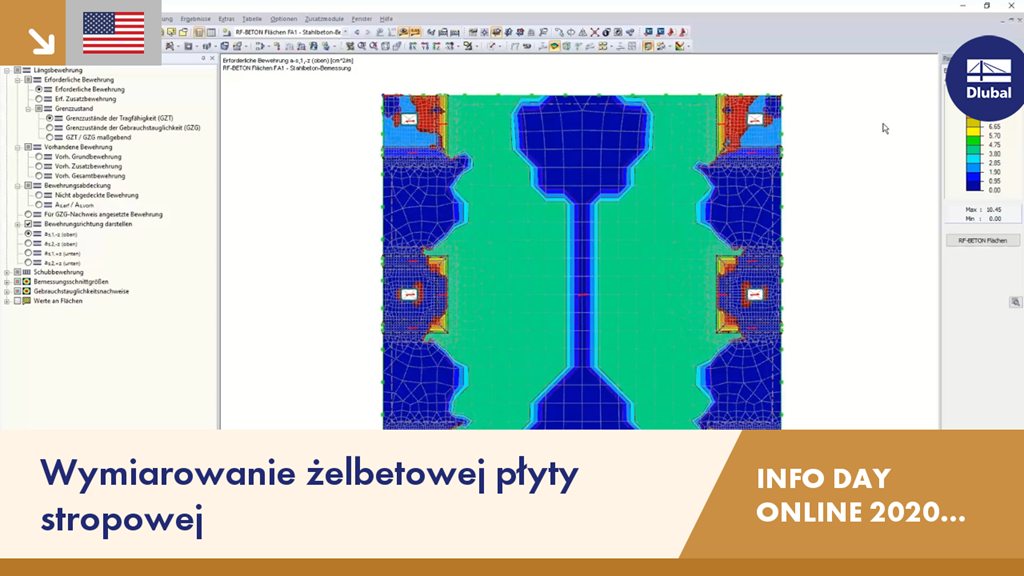 W drugiej części nagrania z Dlubal Info Day Online, Paul Kieloch przedstawia wymiarowanie żelbetowej płyty stropowej w programie RFEM.