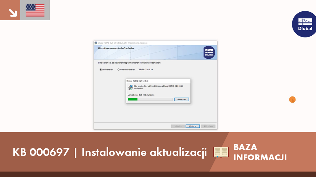 Podczas instalowania aktualizacji w ramach serii wersji (na przykład RFEM 5.01.01 do 5.01.02) stare pliki programu są usuwane i zastępowane nowymi. Dane projektu są oczywiście zachowane. W przypadku aktualizacji do następnej serii wersji (na przykład RFEM 5.02.01) nowa wersja jest instalowana równolegle. Pliki programu są przechowywane w różnych katalogach, więc poprzednia wersja jest nadal dostępna.