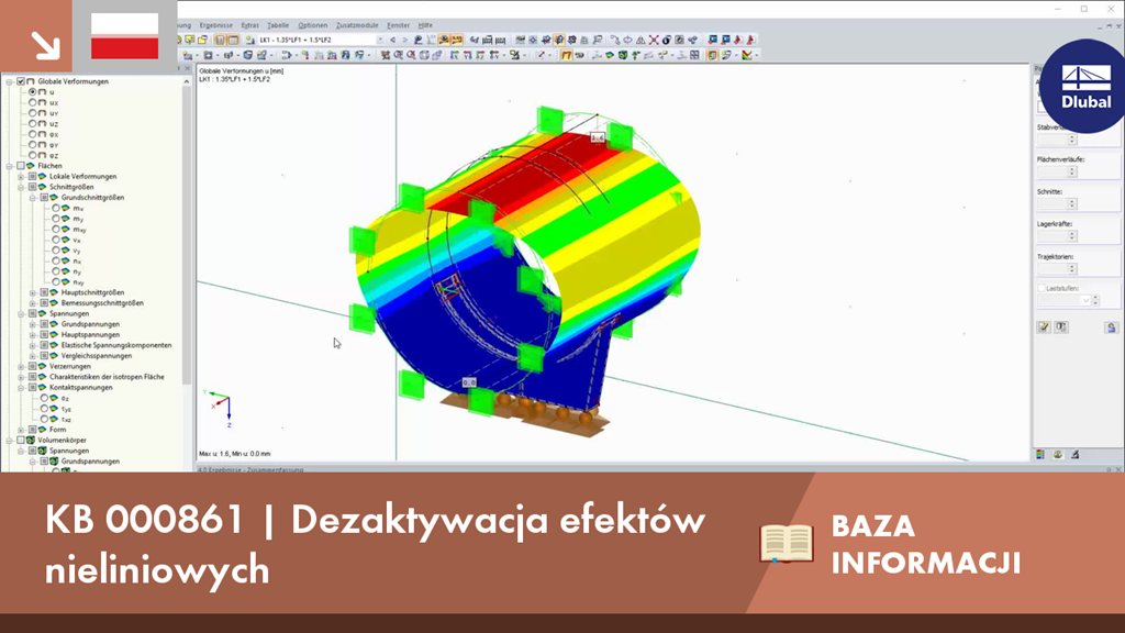 Jeżeli w modelu zastosowano efekty nieliniowe - takie jak uszkodzone podpory, fundamenty, nieliniowości prętów lub bryły kontaktowe - można je dezaktywować w globalnych parametrach obliczeniowych.