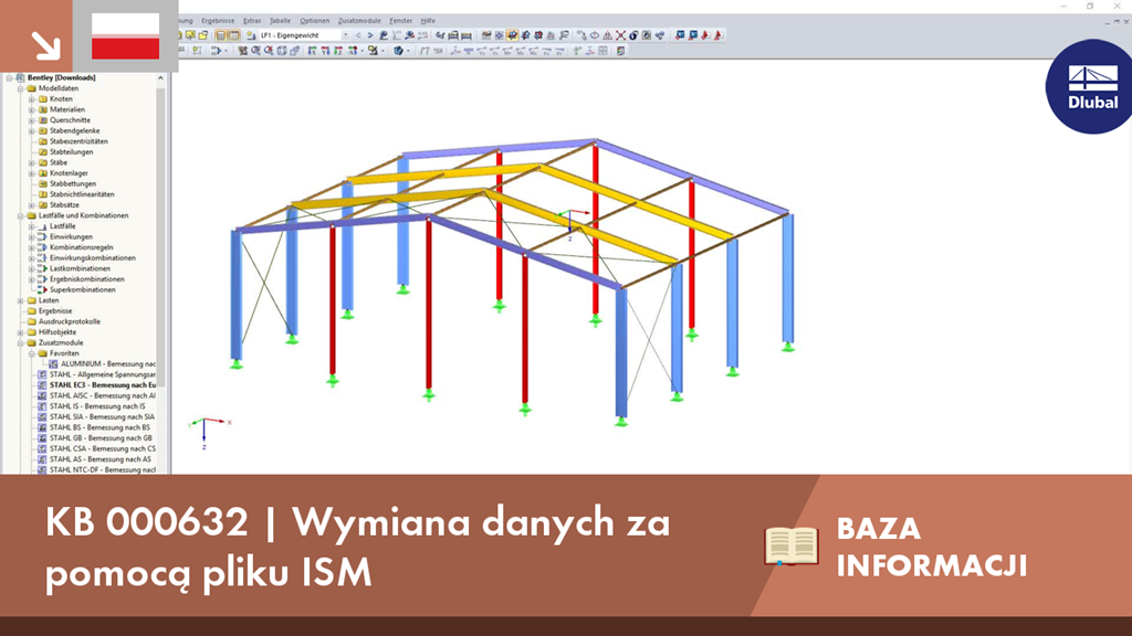 Interesującą okazją do wymiany danych jest plik ISM (ISM = Integrated Structural Modeling) w RFEM i RSTAB. Po wyeksportowaniu modelu do tego formatu danych można go wyświetlić i przeanalizować za pomocą bezpłatnej przeglądarki ISM firmy Bentley.