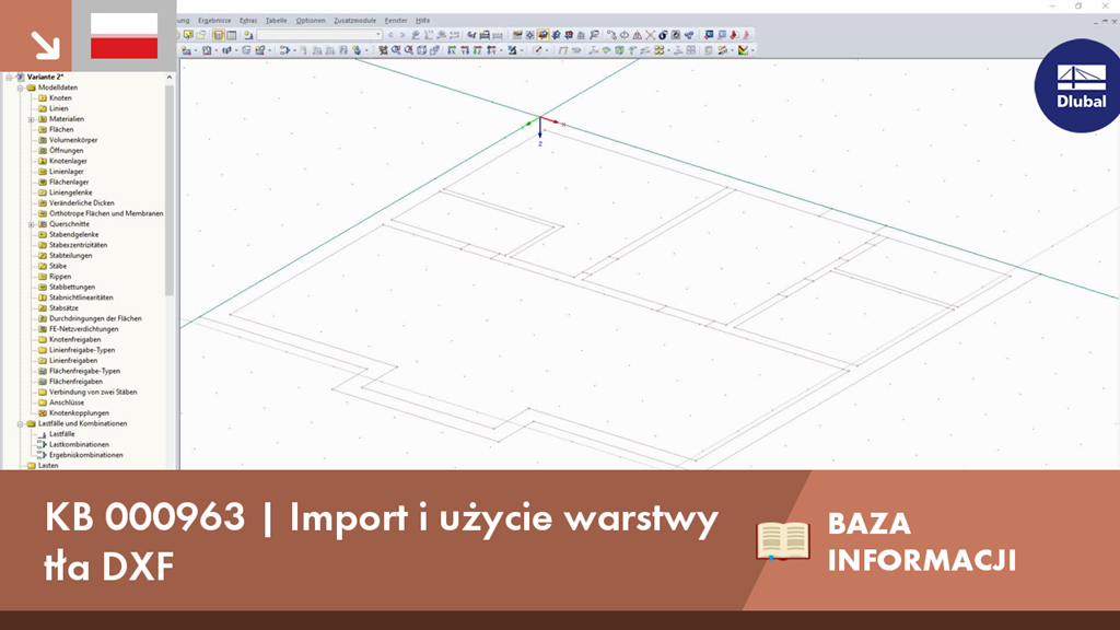 Warstwy DXF planów terenu nie mogą być używane bezpośrednio w programie RFEM: Programy wykorzystujące MES wymagają osi układu, ale na rysunku DXF dostępne są tylko zewnętrzne kontury elementów (ścian, stropów itp.).