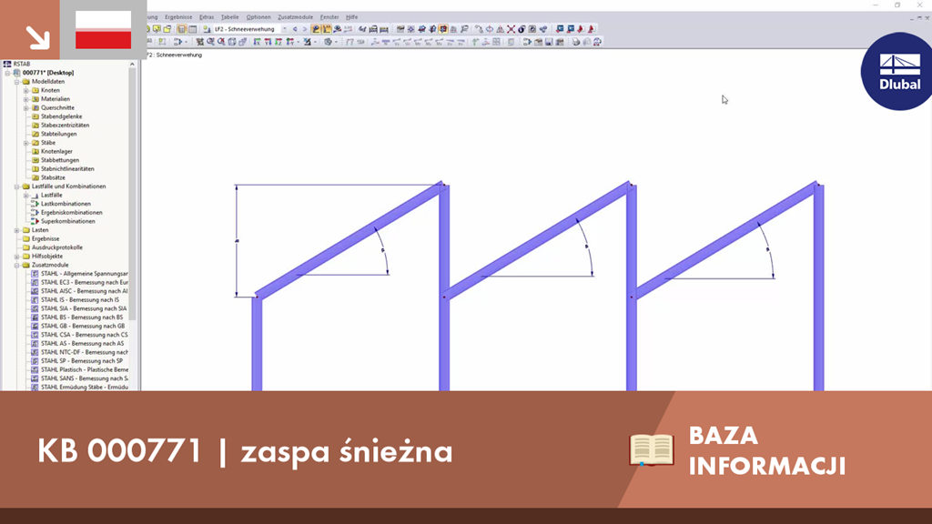 W programach RFEM i RSTAB zaspy śnieżne są uwzględniane zgodnie z pkt. 5.3.4 (3) normy DIN EN 1991-1-3 dla dachów o przekroju piłokształtnym.