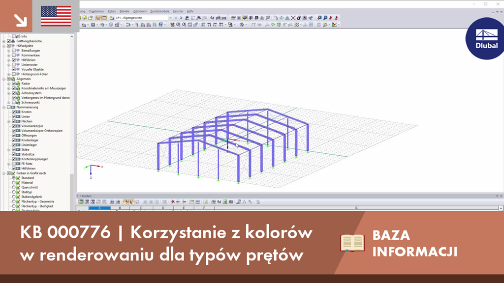 W programach RFEM i RSTAB można teraz wyświetlać i sprawdzać wizualnie użyte typy prętów za pomocą kolorów. W tym celu w Nawigatorze wyświetlania zintegrowano odpowiednią opcję.