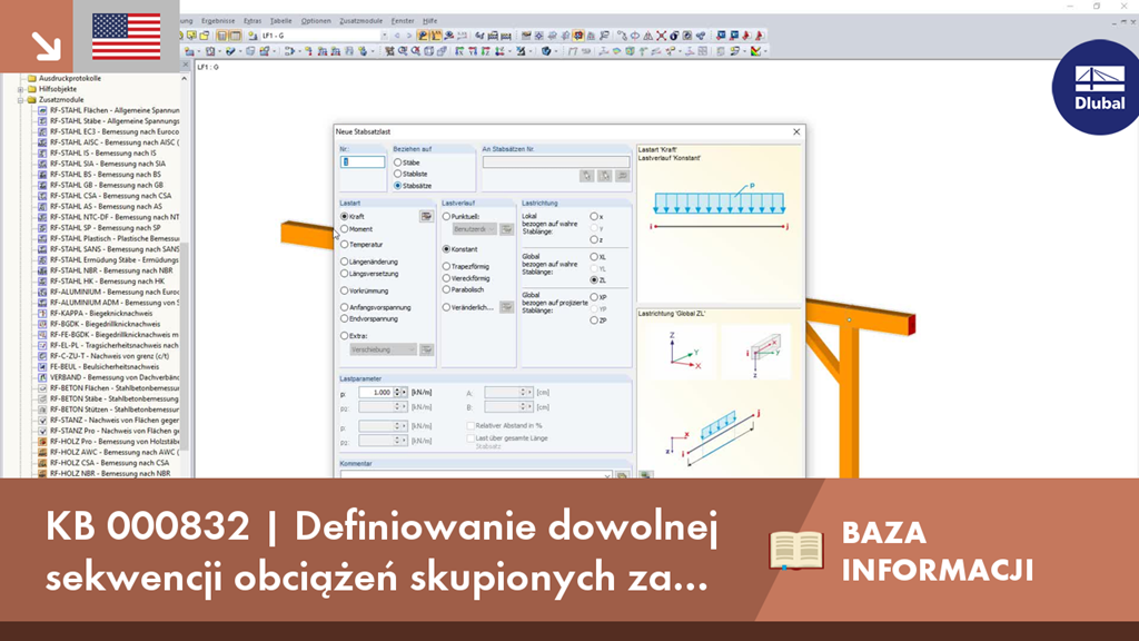 Program RFEM lub RSTAB stanowi rozwiązanie dla tego zadania, oferując zdefiniowane przez użytkownika rozmieszczenie obciążenia skupionego. Ta funkcja obciążenia umożliwia zdefiniowanie dowolnie zdefiniowanej sekwencji obciążeń punktowych z dowolnymi odległościami i wartościami sił w jednym zbiorze danych.