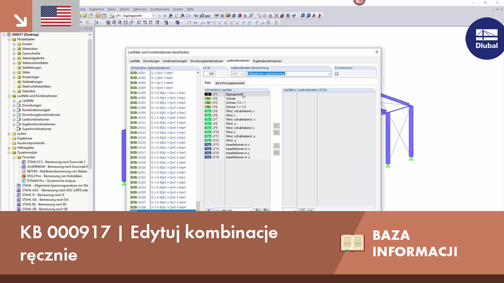 Programy RFEM i RSTAB umożliwiają edycję lub kontrolę kombinacji bezpośrednio poprzez wprowadzanie tekstu.