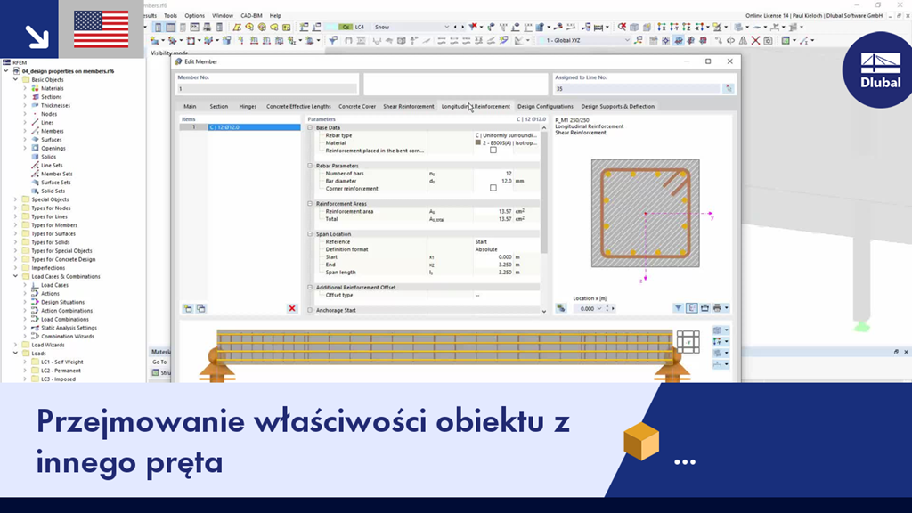 Jeżeli wprowadzamy obszerne informacje o zbrojeniu dla pręta, a nie chcemy wprowadzać ich ponownie dla innego pręta, dane można wprowadzić jednym kliknięciem.
