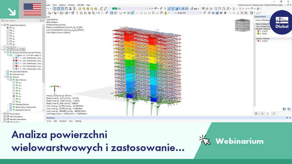 W tym webinarium pokażemy, jak korzystać z oprogramowania RFEM 6 do analizy statyczno-wytrzymałościowej, aby obliczać powierzchnie wielowarstwowe i stosować modele budynków.